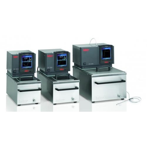 Łaźnie z termostatami cyrkulacyjnymi umożliwiającymi pracę w zakresie do 200 lub nawet 300°C w zależności od zakupionego modelu. Modele CC posiadają możliwość regulacji prędkości tłoczenia/ssania. Ciśnienie może być kontrolowane przez zewnętrzny czujnik co stanowi pewny sposób ochrony posiadanych elementów szklanych przed pęknięciem. Dedykowane do pracy z układami zewnętrznymi. Istnieje także możliwość umieszczenia i termostatowania drobnych obiektów w łaźni.