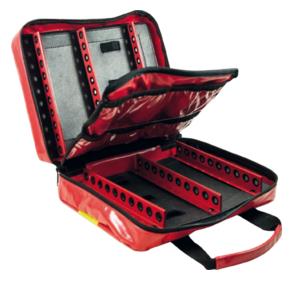 - środkowa, usztywniona ścianka podziałowa z przestronnymi przeźroczystymi przegrodami na strzykawki, ampułki, etc.