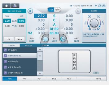 Foropter HDR-7000 posiada wbudowane testy Von Graefe’a, Test Maddoxa, Polaryacyjny test krzyżowy i.t.p.