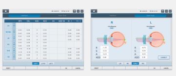 | Zakres soczewek sferycznych | od -29,00 D do +26,75 D od -19,00 D do +16,75 D (przy użyciu cylindra skrzyżowanego lub pryzmatów) (krok pomiarowy: 0,12/0,25/0,5/1/2/3/4 D) |