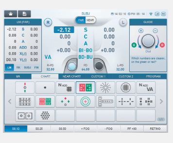 Posiada możliwość niezależnego ustawienia PD dla prawego i lewego oka wraz ze zmianą wysokości osi soczewek przed jednym z oczu +/-3mm. Wbudowana biała dioda LED o regulowanym natężeniu oświetlenia znacznie podnosi komfort badania: jasna, nie wytwarzająca ciepła i wydajna zapewnia wyraźne i bezpieczne oświetlenie optotypów do bliży. Foropter wyposażono dodatkowo w czujnik pozycji czoła pacjenta - niebieską diodę LED, która gaśnie w momencie, gdy pacjent przyjmie optymalną pozycję do pomiaru. Dotykowy panel sterowniczy LCD 10.4’’ pozwala na szybką i intuicyjną obsługę foroptera, a możliwość obrotu wyświetlacza pozwala na prezentację dodatkowych testów jak np. testu Ishihary, Amslera i innych. Zaawansowany system kontroli widzenia do bliży, pozwalający pochylać foropter, symulując odczucia, jak podczas czytania książki. Bardzo ciekawym jest możliwość sterowania foropterem poprzez komputer PC lub tablet dzięki komunikaci WiFi. Całość uzupełnia wbudowana drukarka termiczna.
