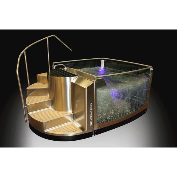 WELLBEING to basen kąpielowy zapewniający idealne warunki zarówno do rehabilitacji pacjenta, jak i czystej relaksacji. Takie cechy, jak kojące właściwości ciepłej wody, podwodne oświetlenie, elegancki, a jednocześnie nowoczesny design, miejsca do siedzenia bądź leżenia oraz dostateczna ilość miejsca do ćwiczeń zaspokoją nawet najbardziej wymagającego pacjenta. Ponadto urządzenia posiadają dysze do masażu oraz system filtracji. Zakrzywione szklane boki zapewniają panoramiczny widok na wnętrze basenu, a konstrukcja ze stali nierdzewnej gwarantuje trwałość i niezawodność.