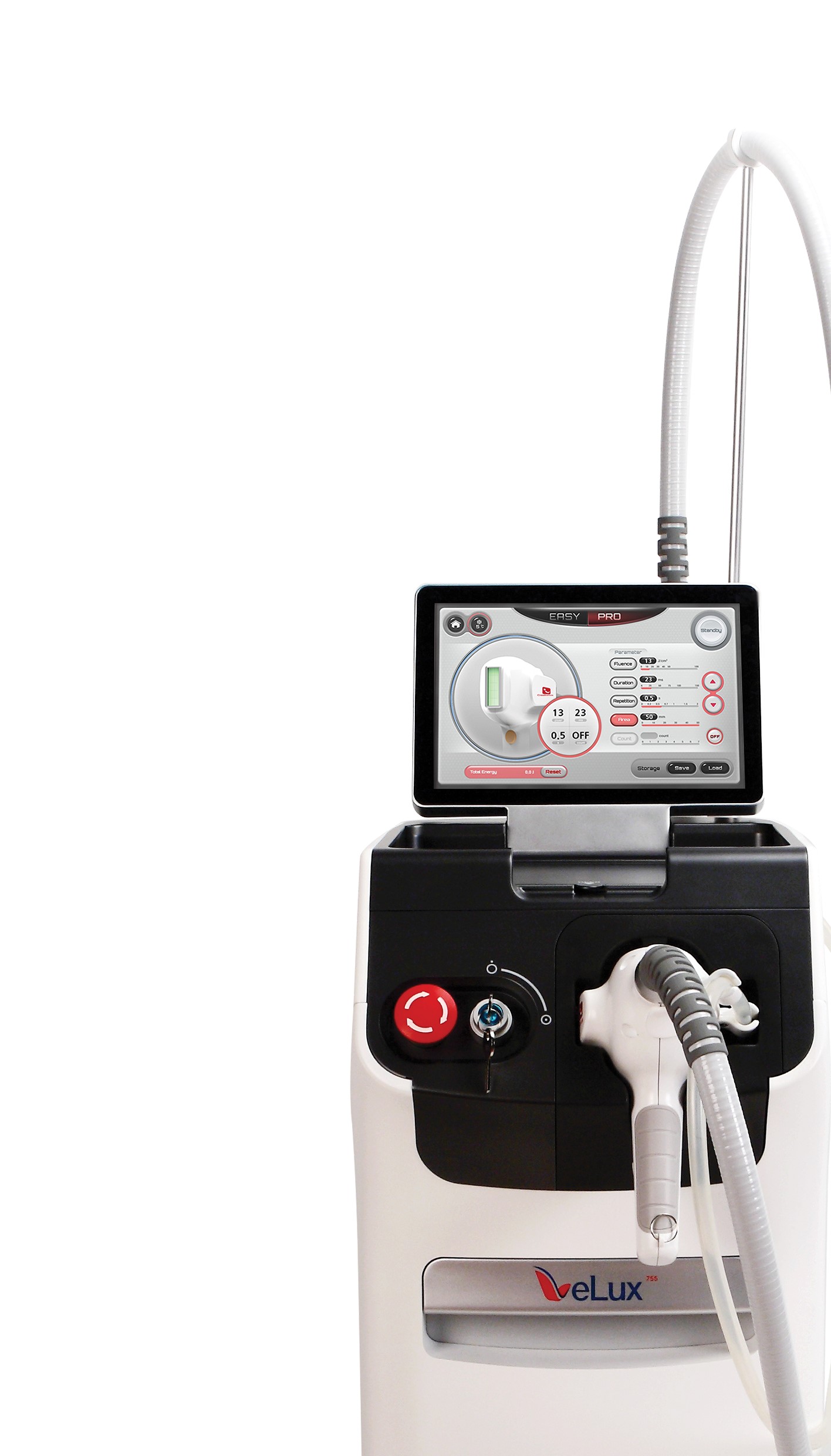 Laser charakteryzujący się podwójną wiązką dla idealnej epilacji. Dla aparatu VeLux kolor bądź grubość włosa nei ma znaczenia, jest równie skuteczny. System kontaktowego chłodzenia skóry w połączeniu z technologią dystrybucjienergii Smart Target Motion sprawia, że zabiegi są wyjątkowo komfortowe i bezpieczne, a efekty epilacji długotrwałe.