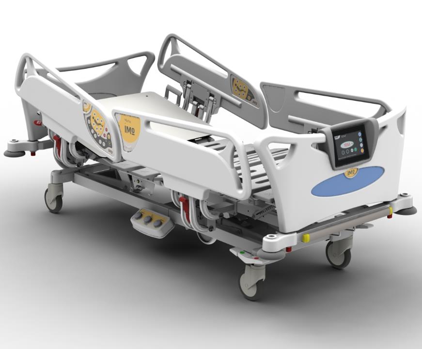 Elektryczne, antybakteryjne łóżko szpitalne wykonane z ultra wytrzymałego, antybakteryjnego tworzywa medycznego HDPE ze sterowanym dotykowo systemem ważenia pacjenta