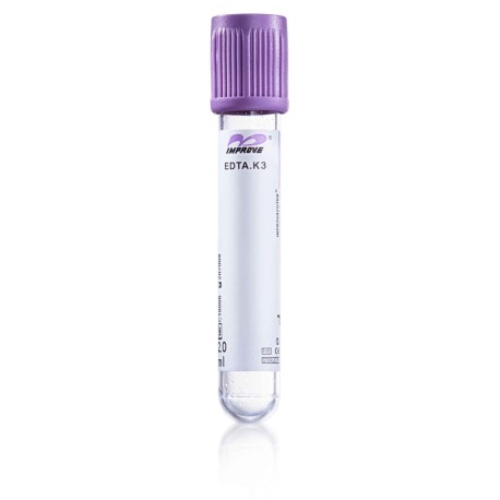 Stosowane do uzyskiwania próbki krwi pełnej lub osocza z EDTA. Wewnętrzne ścianki probówki są pokryte EDTA.K2 lub EDTA.K3. Probówki są również dostępne z roztworem cieczy EDTA. EDTA wiąże jony wapnia zatrzymując kaskadę krzepnięcia. Probówki IMPROVACUTER® EDTA mogą być używane bezpośrednio w analizatorach bez konieczności ich otwierania. Rozmaz krwi powinien być wykonany w ciągu 3 godzin od pobrania. Probówki IMPROVACUTER® EDTA używane są do badań laboratoryjnych krwi pełnej. Probówki IMPROVACUTER® EDTA.K2 i EDTA.K3 mogą być używane w badaniach rutynowych immunohematologii takich jak: grupy krwi, oznaczenia Rh czy badania przeciwciał oraz markery wirusowe w badaniach laboratoryjnych. Probówki IMPROVACUTER® EDTA.K2 i EDTA.K3 używane są również w badaniach osocza w diagnostyce molekularnej. • Środek przeciwkrzepliwy: EDTA.K2, EDTA.K3 • Koncentracja środka przeciwkrzepliwego: 2.0mg bezwodnego EDTA na 1ml krwi • Stan środka przeciwkrzepliwego: ciecz lub proszek