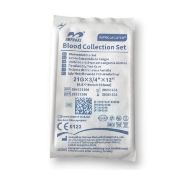 Igła motylkowa z wężykiem Improve 21G, przeznaczona do pobierania krwi w systemie próżniowym oraz procedur infuzji.