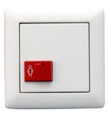 Prosty przycisk wezwania. Czerwony przycisk z symbolem pielęgniarki. Potwierdzenie wezwania przez diodę LED. Wezwanie pomocy poprzez naciśnięcie czerwonego przycisku podczas obecności.