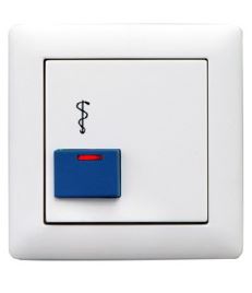 Prosty przycisk wezwania lekarza. Niebieski przycisk z odpowiednim symbolem. Potwierdzenie wezwania przez diodę LED.