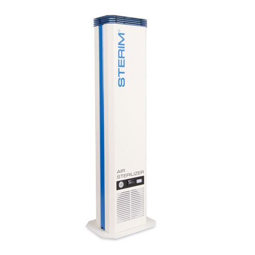 STERI AIR 3 STERIM filtruje zanieczyszczenia, a groźne drobnoustroje neutralizuje za pomocą promieniowania UV-C, emitowanego przez promiennik umieszczony wewnątrz urządzenia. Powietrze zasysane jest przez otwór w górnej części STERI AIR 3. Innowacyjna konstrukcja kanału powietrznego wydłuża drogę przepływu i zwiększa ekspozycję patogenów na promieniowanie, a co za tym idzie – zwiększa skuteczność procesu. Dekontaminator może być bez ograniczeń stosowany w obecności ludzi, w trybie non-stop. Urządzenie jest lekkie i łatwe w przenoszeniu.