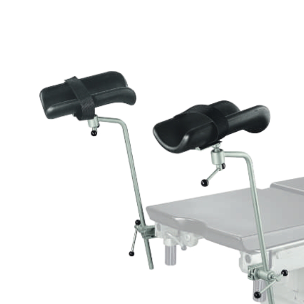 Wielopozycyjne podparcia pod uda służące do podtrzymywania kończyny dolnej w pozycji leżącej lub siedzącej. Dają możliwość obrotu podpórki wokół osi pionowej oraz dzięki przegubowi kulowemu – kątowej regulacji. W skład kompletu wchodzą 2 podparcia o konstrukcji ze stali nierdzewnej oraz zaciski mocujące do szyn bocznych.