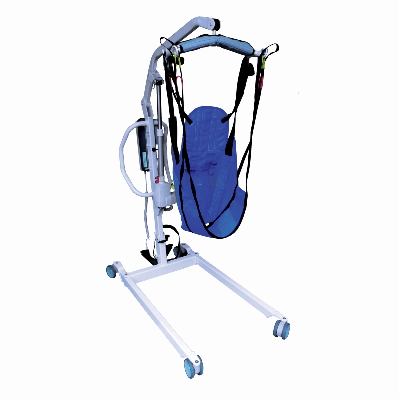 Działanie automatyczne i sterowanie za pomocą pilota zapewnia płynne działanie. Konstrukcja daje możliwość łatwego i szybkiego złożenia do transportu bez użycia jakichkolwiek narzędzi. Model wyposażony jest w ruchomą ramę jezdną z płynną regulacją rozstawu (zwiększenie stabilności), kółka z blokadą, przycisk awaryjny, siedzisko-chustę standard oraz zawieszkę z zagłówkiem z materiału szybkoschnącego i przepuszczającego wodę. Możliwość podnoszenia pacjenta z różnych poziomów: wózka, łóżka, czy nawet podłogi.