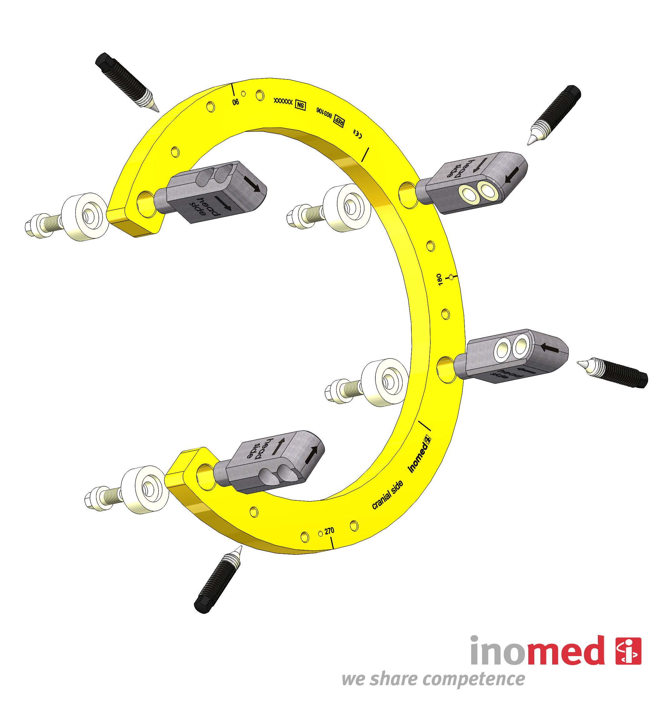 Łuk stereotaktyczny może być mocowany do tytanowego pierścienia aż w 6 pozycjach co zapewnia wszechstronność dostępów operacyjnych (standardowe, boczne, przezklinowe, tylna jama czaszki).
