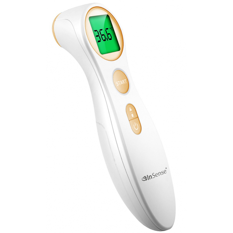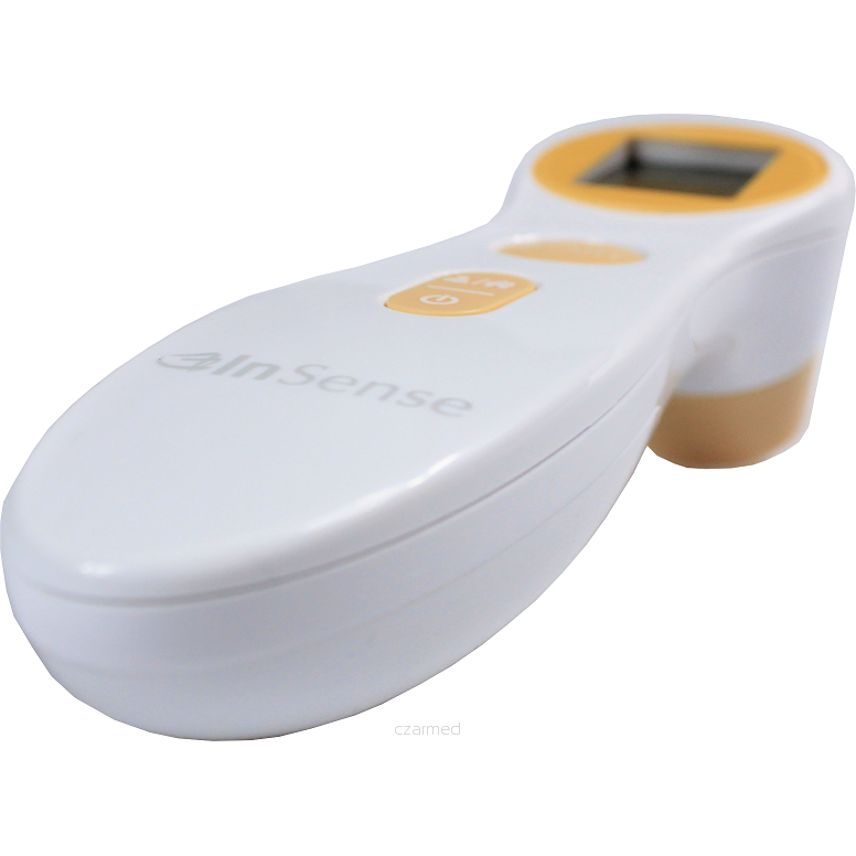 Termometr na podczerwień InSense GOLD został specjalnie zaprojektowany do bezpiecznego użytkowania na czole bez ograniczenia wieku użytkownika oraz do mierzenia temperatury obiektów. Jest to urządzenie medyczne umożliwiające natychmiastowy pomiar temperatury ciała poprzez wykrywanie natężenia światła podczerwonego emitowanego z czoła.