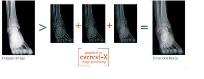Autorskie oprogramowanie przetwarzania obrazu „everest-X” dostosowuje parametry obrazu do wybranej części ciała, przez co zdjęcia zarówno kości drobnych jak i kręgosłupa są porównywalnej wysokiej jakości. Bardzo szeroki zakres dynamiki obrazu, pozwala na zachowanie szczegółowych informacji zarówno obiektów o wysokiej (ramiona, brzuch) i niskiej (płuca, kości drobne) absorpcji promieniowania. Operator nie musi ręcznie dostosowywać jasności / kontrastu by wyodrębnić kliniczne szczegóły. Everest-X, poprzez grupowanie danych umożliwia uwypuklenie na jednym obrazie różnych szczegółów anatomicznych bez utraty informacji o innych.