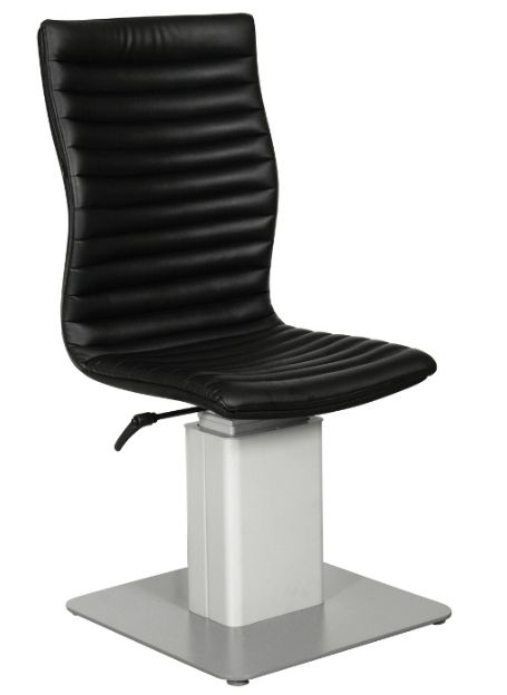 Fotel okulistyczny nierozkładany, z elektryczną regulacją wysokości pacjenta za pomocą przełącznika nożnego.