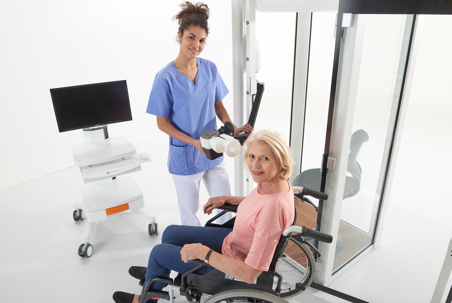 Przestronna kabina pozwala na komfortowe przeprowadzenie badania u każdego pacjenta.