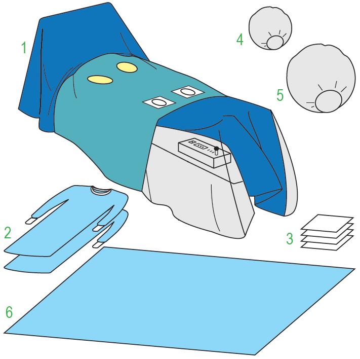 Zestaw multiplex ANGIO 231/302. Elementy zestawu: serweta wykonana z włókniny trójwarstwowej typu SMS o wymiarach 230x320 cm z przezroczystymi foliowymi stawkami po obu stronach do zabezpieczenia pulpitu sterowniczego. Serweta posiada dwa zaślepione otwory w okolicach tt. udowych (O 8,5 cm) otoczone taśmą amoprzylepne oraz dwa otwory eliptyczne w okolicach podobojczykowych o wymiarach 12x15 cm wypełnione folią chirurgiczną. Otwory otoczone warstwą chłonną o wymiarach 150x230 cm - 230x320 mm - 1 sztuka; fartuch chirurgiczny wykonany z włókniny typu SMS rozmiar XL - 2 sztuki; ręczniki chłonne 30x40 cm - 4 sztuki; osłona na głowicę RTG O 50 cm - 1 sztuka; osłona na ekran radiologiczny O 80 - 1 sztuka; serweta na stolik - 150x200 cm (owinięcie zestawu) - 1 sztuka. Zestaw sterylny. Ilość sztuk w opakowaniu "podajnik": 2.