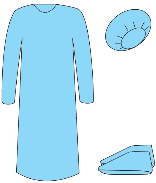 INTRO. Jednorazowy zestaw higieniczny dla odwiedzających. Elementy: fartuch, pokrowce na buty (2szt.), czepek. Pakowany 25 szt.