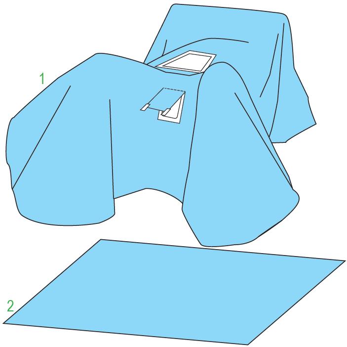 OBŁOŻENIE LAPARO GYN. Elementy zestawu: serweta chirurgiczna do laparoskopii ginekologicznej o wymiarach 180/270x220 cm, zintegrowana z nogawicami, posiada otwór w kształcie trapezu w okolicach jamy brzusznej o wymiarach - wysokość 20 cm, dolna podstawa 30 cm, górna podstawa 20 cm, oraz otwór w okolicach krocza z zabezpieczeniami w postaci osłony o wymiarach 10x15 cm - 180/260x220 cm - 1 sztuka; serweta chirurgiczna (owinięcie zestawu) 150x180 cm - 1 sztuka. Zestaw sterylny. Ilość sztuk w opakowaniu "podajnik": 6.