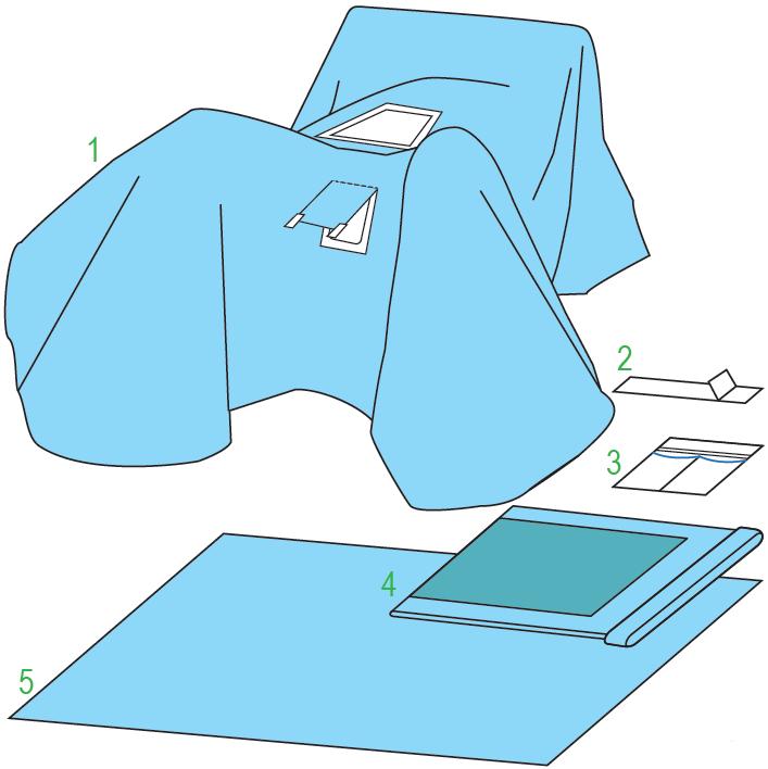 ZESTAW MULTIPLEX LAPARO GYN 180/270. Elementy zestawu: serweta chirurgiczna do laparoskopii ginekologicznej o wymiarach 180/270x220 cm, zintegrowana z nogawicami, posiada otwór w kształcie trapezu w okolicach jamy brzusznej o wymiarach - wysokość 20 cm, dolna podstawa 30 cm, górna podstawa 20 cm, oraz otwór w okolicach krocza z zabezpieczeniami w postaci osłony o wymiarach 10x15 cm - 180/260x220 cm - 1 sztuka; taśma samoprzylepna 9x49 - 1 sztuka; kieszeń dwukomorowa samoprzylepna ze sztywnikiem - 2x15x40 cm - 1 sztuka; osłona na stolik MAYO 79x145 cm - 1 sztuka; serweta na stolik (owinięcie zestawu) 150x200 cm - 1 sztuka. Zestaw sterylny. Ilość sztuk w opakowaniu "podajnik": 5.