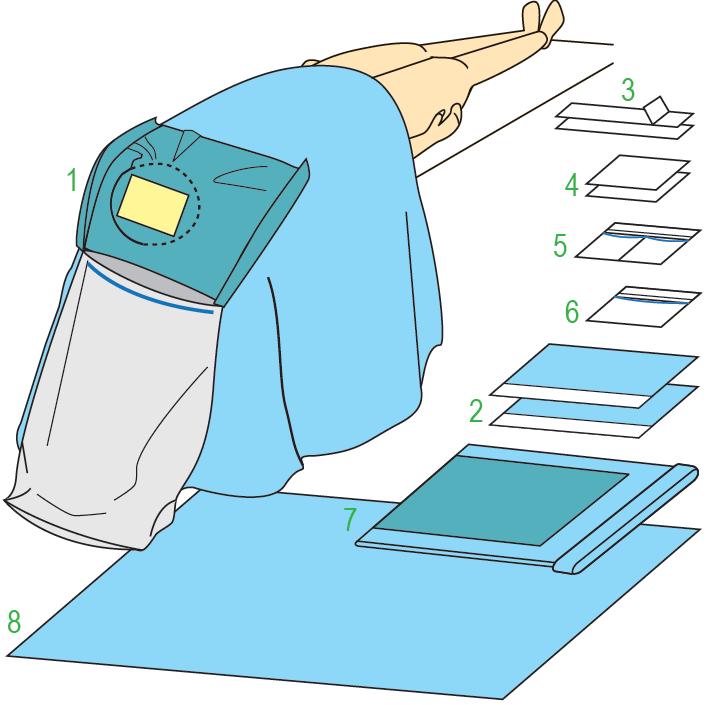 ZESTAW MULTIPLEX COMPTUS 180/240. Elementy zestawu: serweta chirurgiczna do zabiegów w okolicy głowy o wymiarach 240x180 cm posiadająca otwór wypełniony folią chirurgiczną o wymiarach 25x20 cm, wyposażona w dodatkową warstwę chłonna wokół otworu o wymiarach 50x60 cm z dwoma zakładkami oraz zintegrowany worek foliowy do przechwytywania płynów 240x180 cm - 1 sztuka; serweta chirurgiczna z taśmą samoprzylepną do zabezpieczenia headrestu 45x60 cm - 2 sztuki; taśma samoprzylepna 9x49 cm - 1 sztuka; ręczniki chłonne 30x40 cm - 2 sztuki; kieszeń dwukomorowa samoprzylepna ze sztywnikiem 2x15x30 cm - 1 sztuka; kieszeń jednokomorowa samoprzylepna ze sztywnikiem 30x30 cm - 1 sztuka; osłona na stolik MAYO 79x145 cm - 1 sztukal; serweta na stolik - (owinięcie zestawu) 150x200 xm - 1 sztuka. Zestaw sterylny. Ilość sztuk w opakowaniu typu 'podajnik': 4.