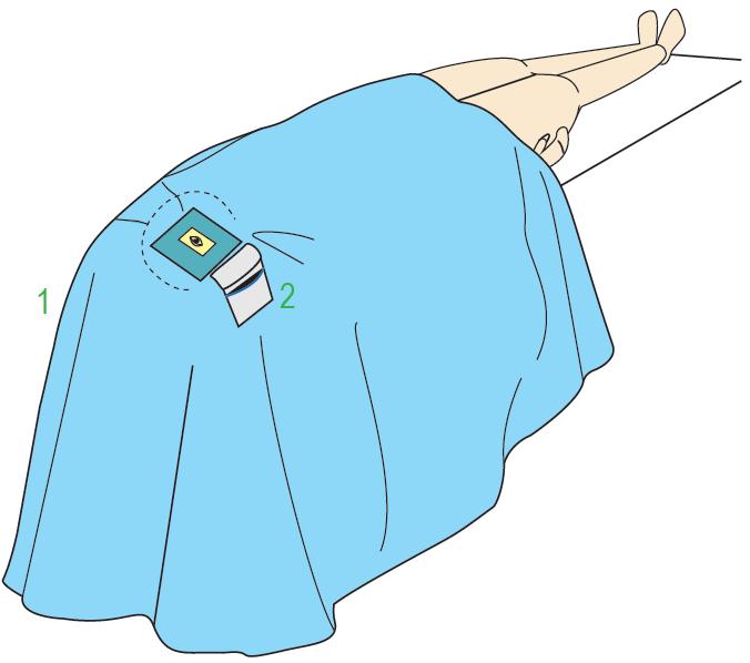 OBŁOŻENIE OCULUS 130/150. Zestaw okulistyczny. Elementy zestawu: serweta chirurgiczna do zabiegów okulistycznych o wymiarach 130x150 cm, posiadająca otwór wypełniony folią chirurgiczną o wymiarach 9x12 cm otoczony warstwą wysoko chłonną o wymiarach 37,5x37,5 cm - 130x150 cm - 1 sztuka; kieszeń samoprzylepna za sztywnikiem 20x20 cm - 1 sztuka. Ilość sztuk w opakowaniu "podajnik": 20.