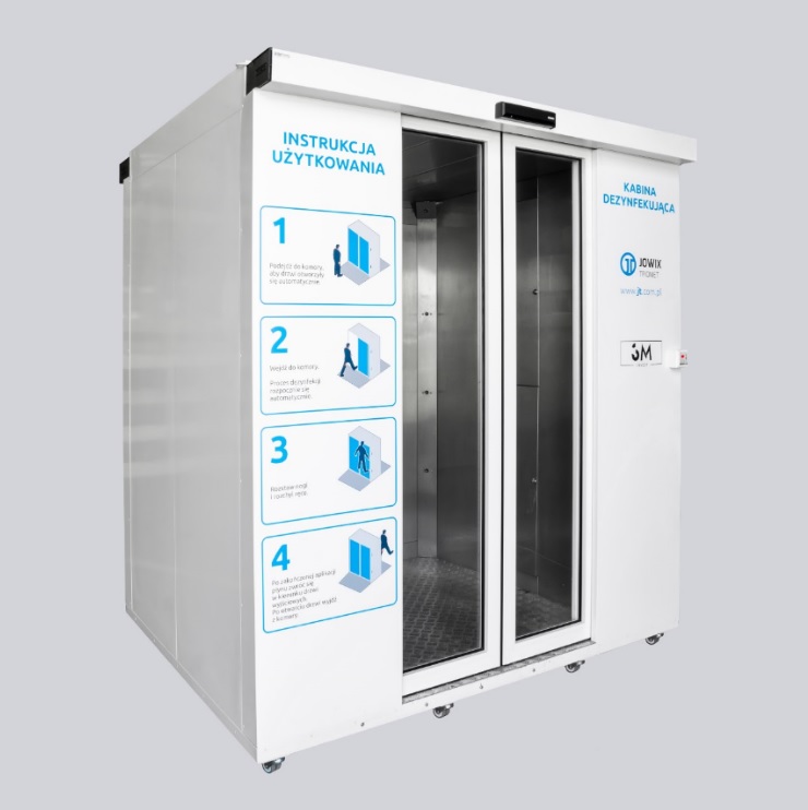 Śluza dezynfekcyjna firmy JOWIX TRIOMET może być zamontowana w każdym miejscu. Zarówno na zewnątrz budynku jak i w środku. Śluza jest w pełni mobilna. Osoby korzystające ze śluzy są poddawane procesowi dezynfekcji w bardzo krótkim okresie czasu poprzez zamgławianie z dysz wewnątrz śluzy. Śluza działa automatycznie i jest aktywowana , w chwili wykrycia przez fotokomórkę ruchu przed drzwiami. Drzwi otwierają się automatycznie. Preparat dezynfekujący silverspet total jest zasysany ze zbiornika wbudowanego do śluzy oraz podawany pod odpowiednim ciśnieniem do 16 dysz które zamgławiają jej wnętrze. Po zakończeniu zamgławiania drzwi otwierają się automatycznie. Dla bezpieczeństwa z chwilą zaniku prądu drzwi w śluzie otwierają się automatycznie. Dodatkowo wewnątrz i na zewnątrz śluzy zamontowano przyciski pozwalające na otwarcie drzwi w każdej chwili. Śluza przystosowana jest do korzystania dla osób niepełnosprawnych