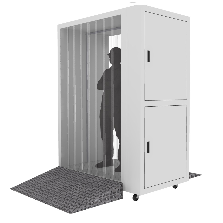 Kabina dezynfekcyjna firmy JOWIX TRIOMET może być zamontowana w każdym miejscu. Zarówno na zewnątrz budynku jak i w środku. Śluza jest w pełni mobilna. Osoby korzystające ze kabiny są poddawane procesowi dezynfekcji w bardzo krótkim okresie czasu poprzez natrysk z dysz wewnątrz kabiny. Kabina działa na zasadzie czujnika ruchu wewnątrz kabiny. Preparat dezynfekujący SILVERSEPT TOTAL jest zasysany ze zbiornika oraz podawany pod odpowiednim ciśnieniem do 16 dysz natryskowych wewnątrz kabiny.