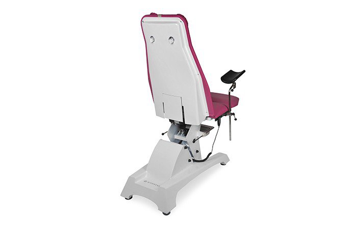 Konstrukcja wykonana z pokrytych farbą proszkową profili stalowych. Fotel sterowany elektrycznie, dzięki czemu wysokość fotela i kąt nachylenia oparcia możemy regulować pilotem elektrycznym. Fotel ma zapewnić pełen komfort i wygodę zarówno dla pacjentów, jak i lekarzy. Składa się z regulowanego oparcia, wygodnego podgłówka i regulowanych na wszystkich płaszczyznach podkolannikach. Posiada też demontowany podnóżek. W standardzie jest również pojemnik nierdzewnej stali. Blat wykonany jest z doskonałego materiału skóropodobnego, dostępnego w szerokiej gamie kolorystycznej. Fotel umożliwia uzyskanie pozycji leżącej, Trendelenburga i anty-Trendelenburga.