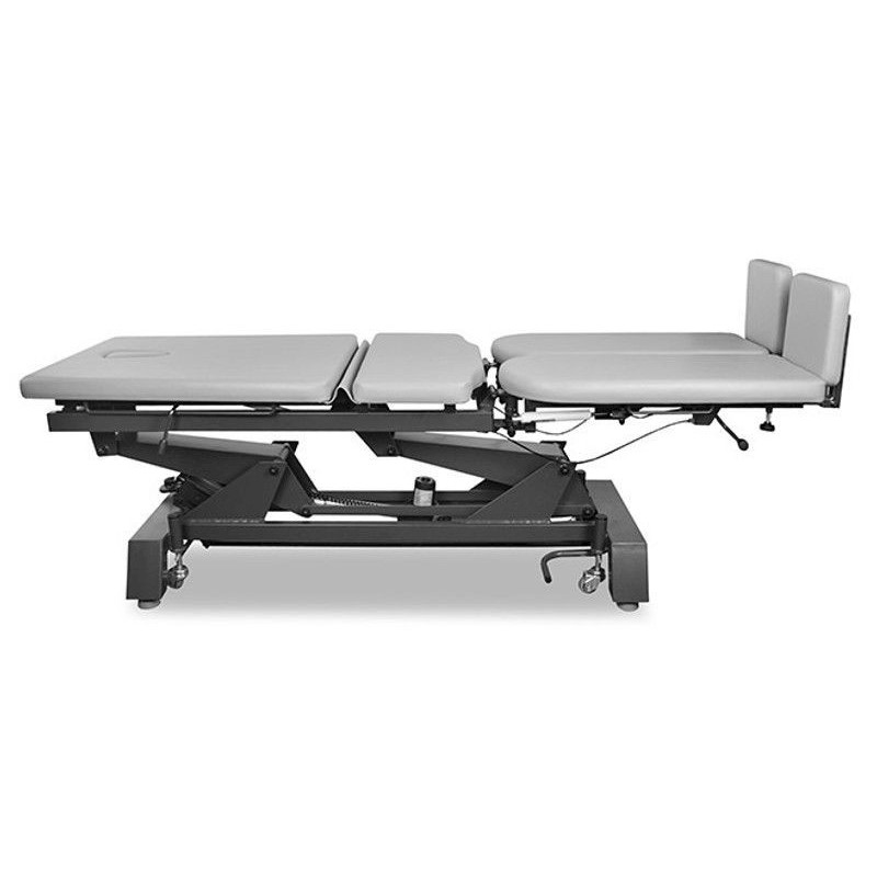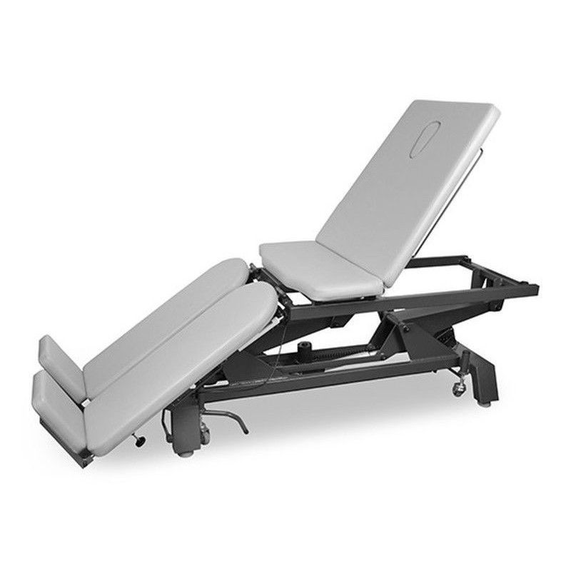 regulacja elektryczna (KSR 4 E) - regulacja wysokości odbywa się standardowo za pomocą pilota ręcznego. Alternatywnym rozwiązaniem (za dopłatą) jest sterowanie z ramy lub pilota nożnego. W obydwu sytuacjach masażysta nie musi używać rąk do regulacji wysokości bo pozwala zaoszczędzić czas oraz chronić tapicerkę przed środkami kosmetycznymi. Do sterowania używane są siłowniki renomowanych firm.