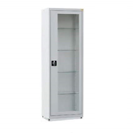 Drzwi szafy są metalowe i posiadają wypełnienie ze szkła hartowanego. Zamykane są za pomocą zamka baskwilowego, który rygluje drzwi w 3 punktach, zabezpieczając przy tym przechowywane lekarstwa lub aparaturę.