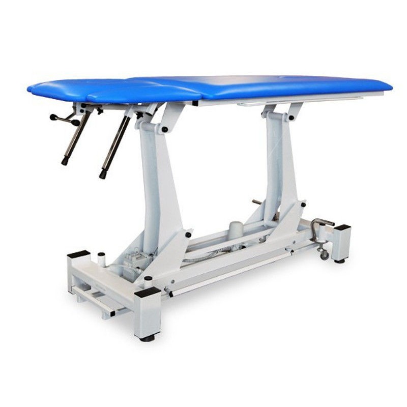 Stół rehabilitacyjny NSR 3 E firmy Juventas wyróżnia się stabiliną, metalową konstrukcją pokrytą farbą proszkową. Leżysko stołu składa się z dwóch segmentów. Regulacja wysokości odbywa się przy pomocy pilota ręcznego, nożnego lub ramy sterującej w wersji elektrycznej. Cechą, która wyróżnia ten model jest duży zakres regulacji wysokości stołu (48 cm - 100cm). Kąt pochylenia zagłówka regulowany jest za pomocą sprężyny gazowej. Stół posiada posiada dwa otwory: w zagłówku oraz w części środkowej leżyska. Dodatkowo stół może być wyposażony w podłokietniki (wersja: NSR 3 E PLUS).