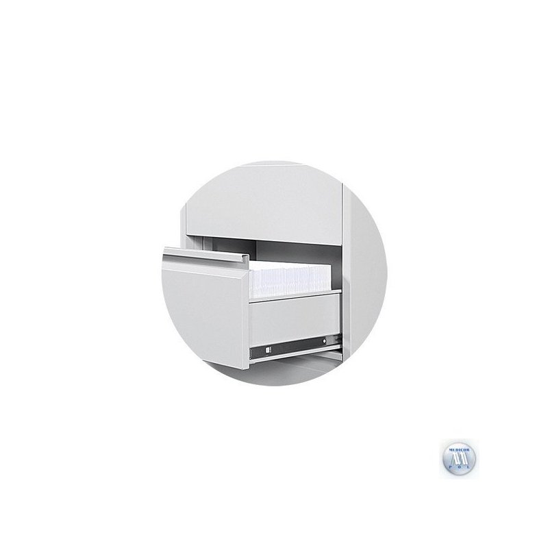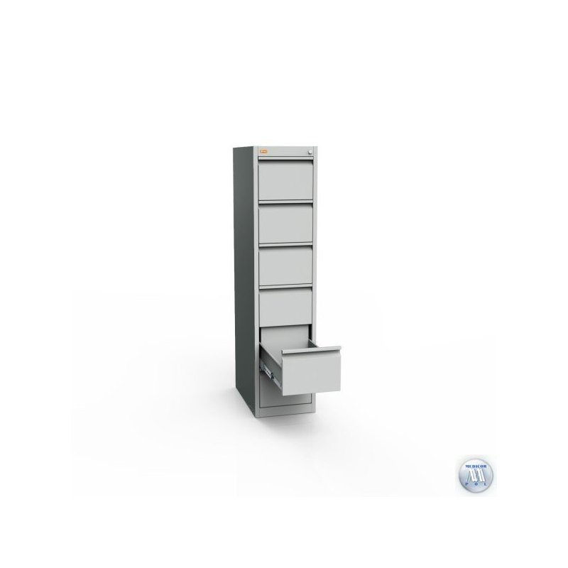Szafa do kopert B-5 to czteroszufladowa szafa, w której można przechowywać koperty formatu B-5 w poziomie. Szuflada została wyposażona w przegrodę, która umożliwia ułożenie dwóch rzędów kopert. Szafę wykonano z blachy czarnej o grubości 0,6mm- 2,0 mm, malowanej farbami proszkowymi (epoksydowo-poliestrowymi) w kolorze RAL 7035 (jasny popiel). Szuflady można przesuwać po prowadnicach teleskopowych z blokadą, która zabezpiecza przed wypadnięciem. Całość zamyka się jednym centralnym zamkiem. Maksymalne obciążenie prowadnic szuflady to 80kg. Szafa zawiera blokadę, która pozwala na wysunięcie tylko jednej szuflady, co zachowuje jej stabilność. Szafa posiada także stopki regulacyjne.