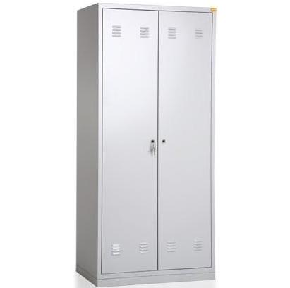 Dwudrzwiowa szafa ubraniowa wyposażona jest w półkę, wieszaki boczne oraz drążek na wieszaki ubraniowe. Każda komora posiada podział wewnętrzny (czyste/ brudne). Wykonana jest z blachy czarnej o grubości 0.6mm-1.0mm, malowana farbami proszkowymi (epoksydowo- poliestrowymi). Zamykana zamkiem krzywkowym w systemie MASTER KEY. Całość osadzona na cokole wykonanym z blachy ocynkowanej (malowanej) o grubości 1.0mm.