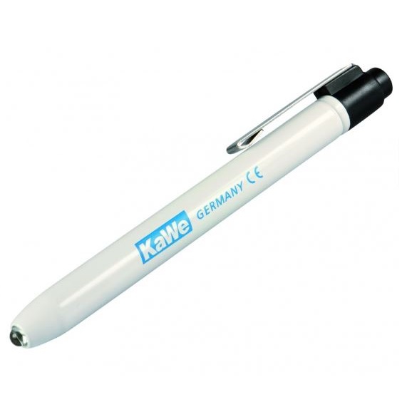 Atrakcyjna i praktyczna latarka diagnostyczna KaWe oferuje precyzyjne możliwości diagnostyczne podczas badań. Prosty włącznik/wyłącznik, uruchamiany poprzez naciśnięcie metalowego klipsa. Zawiera 2 baterie typu AAA.