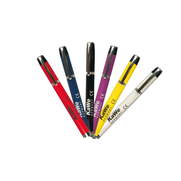 Atrakcyjna i praktyczna latarka diagnostyczna KaWe CLIPLIGHT oferuje precyzyjne możliwości diagnostyczne podczas badań. Prosty włącznik/wyłącznik, uruchamiany poprzez naciśnięcie metalowego klipsa. Zawiera 2 bateria typu AAA.