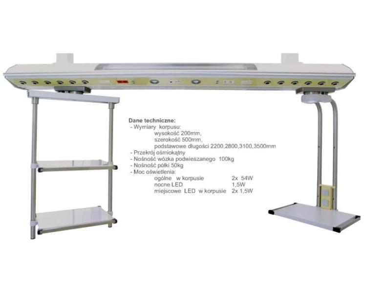 Mosty B.O.R.I.S Eco stanowią systemy poziomych korrpusów zasilających, mocowanych na sztywno do sufitu za pomocą pionowych słupów nosnych. Znajdują one zastosowanie na różnego rodzaju salach wzmożonego nadzoru jak również na blokach operacyjnych. Dane techniczne: wymiary korpusu: wysokość 200 mm, szerokość 500 mm, podstawowe długości 2200, 2800, 3100, 3500 mm; przekrój osmiokątny; nośność wózka podwieszanego 100 kg; nośność półki 50 kg; moc oświetlenia: ogólna w korpusie 2x54W, nocne LED 1,5 W, miejscowe LED w korpusie 2x1,5W. Ze względu na obecność i rodzaj elementów podwieszanych jednostki zasilające B.O.R.I.S Eco dzielimy na cztery różne typy: Eco 1 - most zasilający bez wózków podwwieszanych; Eco 2 - most zasilający z wóżkami podwieszanymi nie jezdnymi, obracalnymi wokół własnej osi; Eco 3 - most zasilający z wózkami podwieszanymi jezdnymi, obracanymi wokol własnej osi; Eco CE - most zasilający z wózkami podwieszanymi jezdnymi, obracalnymi wokół własnej osi i gniazdami elektrycznymi. Urządzenia mogą byc konfigurowane wg standardów lub na specjalnie życzenie użytkownika. Możliwy osprzęt: połki; szuflady; wieszaki i drążki na płyny infuzyjne; szyny sprzętowe; lampki; schowki na kable; wysiegniki na monitor, klawiaturę itp. Wyposażenie korpusu mostu: gniazda gazowe do 24 sztuk; gnizda elektryczne do 40 sztuk; instalacja przyzywowa; instalacja teletechniczna; oświetlenie; włącznik/wyłącznik światła. Urządzenie medyczne klasy IIb. Deklaracje zgodności CE.