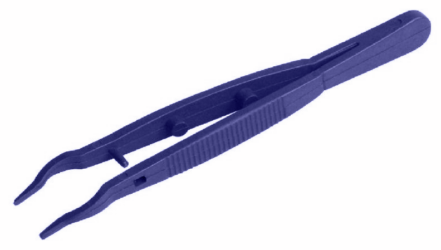Pęseta, stal nierdzewna, zakrzywiona, końcówki z wysokiej jakości tworzywa sztucznego, długość 130 mm