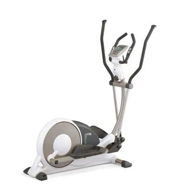 Orbitrek (trenażer eliptyczny). Łożyskowane przeguby. Długość kroku: 390 mm. Regulacja mocy zależnie od liczby obrotów. Zasilanie: baterie, Wyświetlacz LCD.Pomiar pulsu: czujnik dłoni, klips na ucho, CARDIO-PULS-SET (wyposażenie dodatkowe). Trenażer Cross !me jest dostępny w trzech wersjach kolorystycznych: biało/pomarańczowy, biało/grafitowy, biało/niebieski.