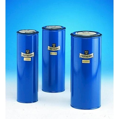 Wykonane ze szkła DURAN®. Zgodne z normą DIN EN ISO 16496. Kształt cylindryczny, wąski. Z metalową obudową, malowaną proszkowo na kolor niebieski. Każde z naczyń może zostać dostarczone bez obudowy, nieposrebrzone lub z przezroczystym nieposrebrzonym paskiem do obserwowania zawartości. Korki należy zamawiać osobno.