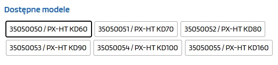- Dostępne modele: fi – 60, 70, 80, 90, 100, 160 mm oraz H- L350 mm.