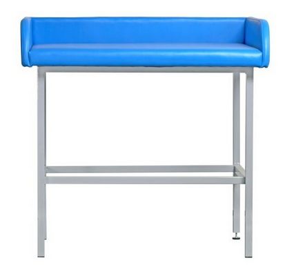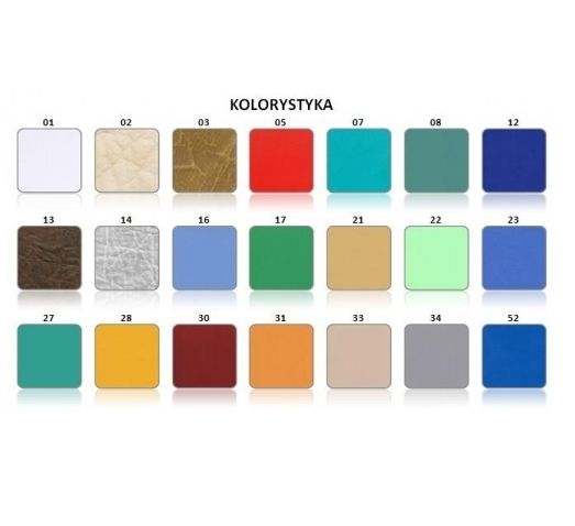 Leżysko stolika do badania niemowląt KS1 obite jest materiałem skóropodobnym, co sprawia, że jest łatwe do utrzymania w czystości. Klient ma możliwość wyboru koloru tapicerki z palety kolorów standardowych zawartych w karcie katalogowej.