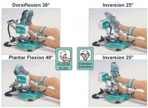 Urządzenie przeznaczone jest do ćwiczeń biernych w obrębie stawu skokowego i tylnej części stopy. Ćwiczenia można prowadzić w łóżku lub w pozycji siedzącej.