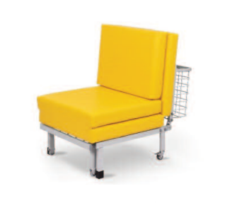 Rama wykonana z profili stalowych pokrytych epoksydowym lakierem proszkowym. Siedzisko, oparcie, podnóżek z wypełnieniem piankowym tapicerowane materiałem winylowym. Powierzchnie fotela odporne na środki dezynfekcyjne i promieniowanie UV. Możliwość wyboru koloru tapicerki.