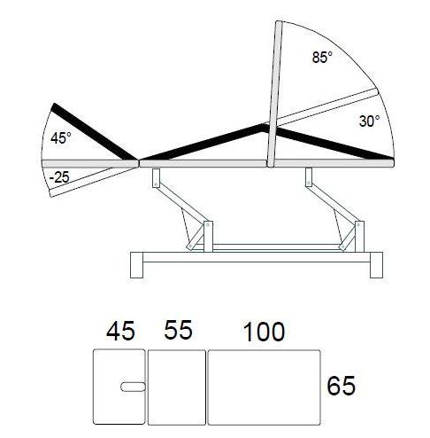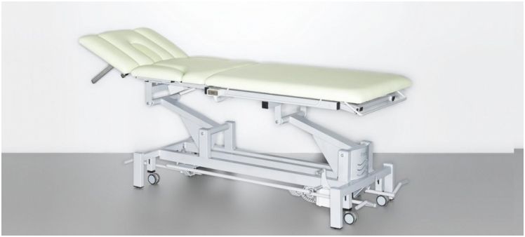 7-sekcyjny stół do masażu i rehabilitacji z podnośnikiem elektrycznym, regulowanymi sekcjami na ręce, wycięciem na twarz.