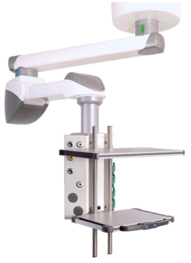 Obrotowe zawieszenie sufitowe, z ramieniem sprężynowym regulowanym w wysokości o maksymalnym udźwigu 180 kg lub z ramieniem zmotoryzowanym, o maksymalnym udźwigu 150 kg. Pneumatyczne oraz elektromagnetyczne hamulce gwarantują bezpieczne pozycjonowanie.