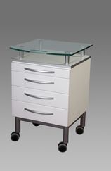 Asystor 4-szufladowy z blatem szklanym na słupkach