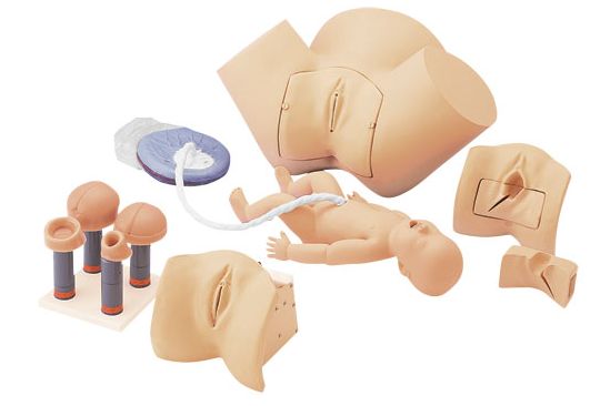 Jest to fantom położniczy z wymiennymi kroczami: do badania pochwy (z3 rożnymi stadiami rozwarcia i modelem główki płodu), odbioru porodu i nacinania i zszywania krocza. Procedury możliwe do przeprowadzenia: - wyjaławianie sromu, obracanie płodu, podtrzymywanie krocza, pojawianie się główki, obręczy barkowej i ciała płodu, kontrola i przecinanie pępowiny. Zestaw zawiera: moduł do badania pochwy, krocze, fantom noworodka, łożysko i pępowina, modele epistomii (lewoskośna, prawoskośna),fantom miednicy żeńskiej. I. Specyfikacja techniczna 1) Model miednicy żeńskiej – 1szt 2) Model sromu do wykonywania badań wewnętrznych – 1 szt. 3) Model rozwarcia 1-2 cm -1 szt. 4) Model rozwarcia 3-4 cm – 1 szt. 5) Model rozwarcia 8-9 cm – 1szt. 6) Model główki płodu – 1 szt. 7) Śruby – 2 szt. 8) Podkładka – 1 szt. 9) Model płodu – 1 szt. 10) Model łożyska z pępowiną – 1szt. 11) Sterowniki do instalowania części porodowych – 2 szt. 12) Śruby – 2 szt. 13) Model sromu do mocowania modeli episiotomii – 1 szt. 14) Model nacięcia krocza (prawy) – 1 szt. 15) Model nacięcia krocza (lewy) 1 szt.