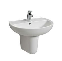 Umywalka REKORD (60 cm / 55 cm / 50 cm), z otworem lub bez otworu, z przelewem. Mocowana na śrubach. Do kompletowania z pólpostumentem. Możliwość kompletowania również z szafkami Domino XL.