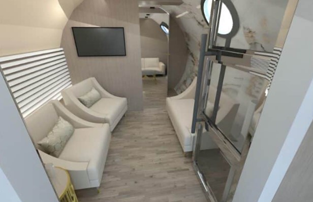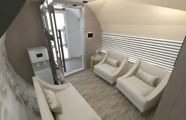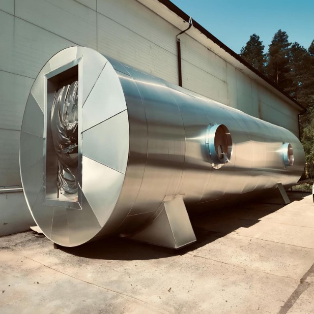 • Gabinet „Kapsuła Natury” wymiary wewnętrzne: wysokość od podłogi 2300 mm, dł 8000mm, Wymiary zewnętrzne fi 3200mm, wysokość 3400mm, długość całkowita ok 9700 mm (wraz z maszynownią i ociepleniem )